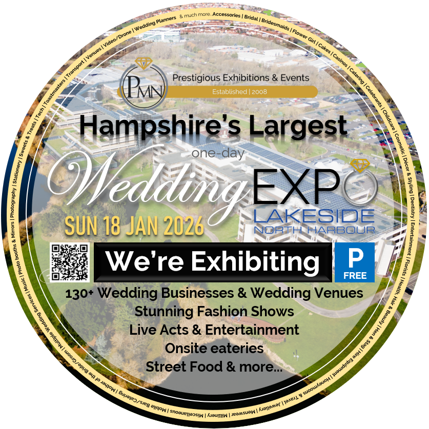 Display our ‘proud to exhibit at Hampshire Wedding EXPO’ badge, or any other, on your website and/or social media pages. Use it when you are attending a particular fayre/fayre to remind your audience of where you’ll be and when.  Download the format that works for you, simply link back to our website https://pmnweddingfayres.co.uk/hampshire-wedding-expo/